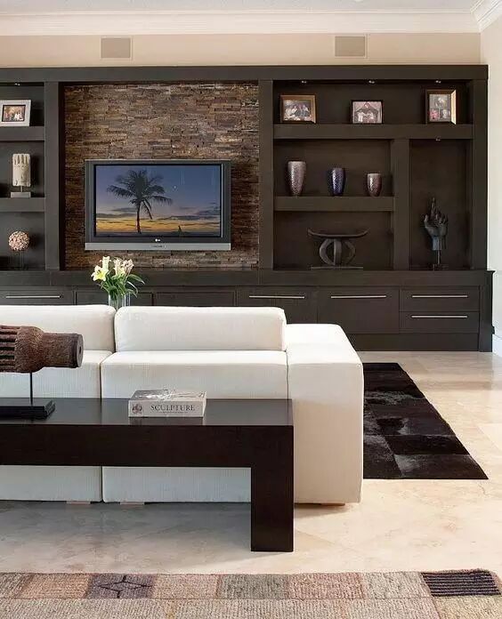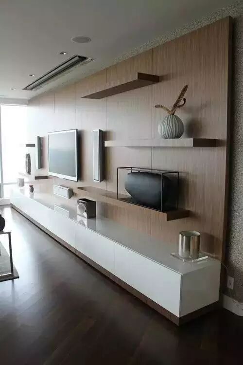 以下几款是整体柜式电视背景,没有浪费整面墙的装饰性,又可以收纳不少家庭用品,还可以摆设精美的装饰品。