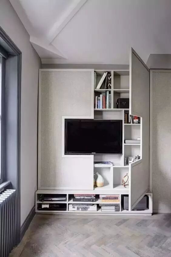 隐藏型电视墙估计是小户型的最爱,因为他比较实用,既节省空间,又看起来美观温馨。