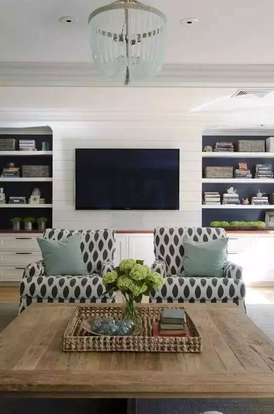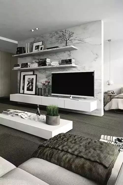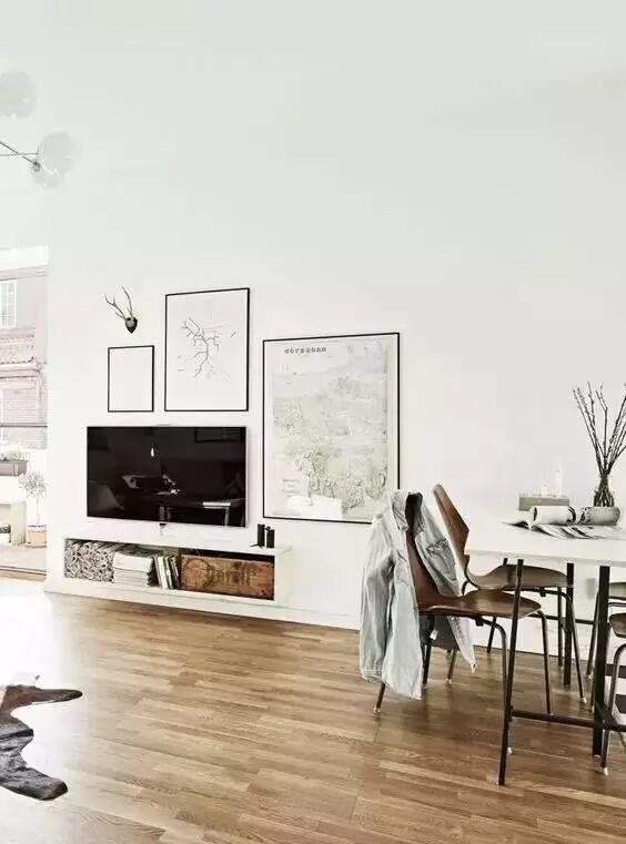 把电视机镶入到背景墙中,让电视机和电视墙融为一体,是不是感觉整个空间宽敞了不少!