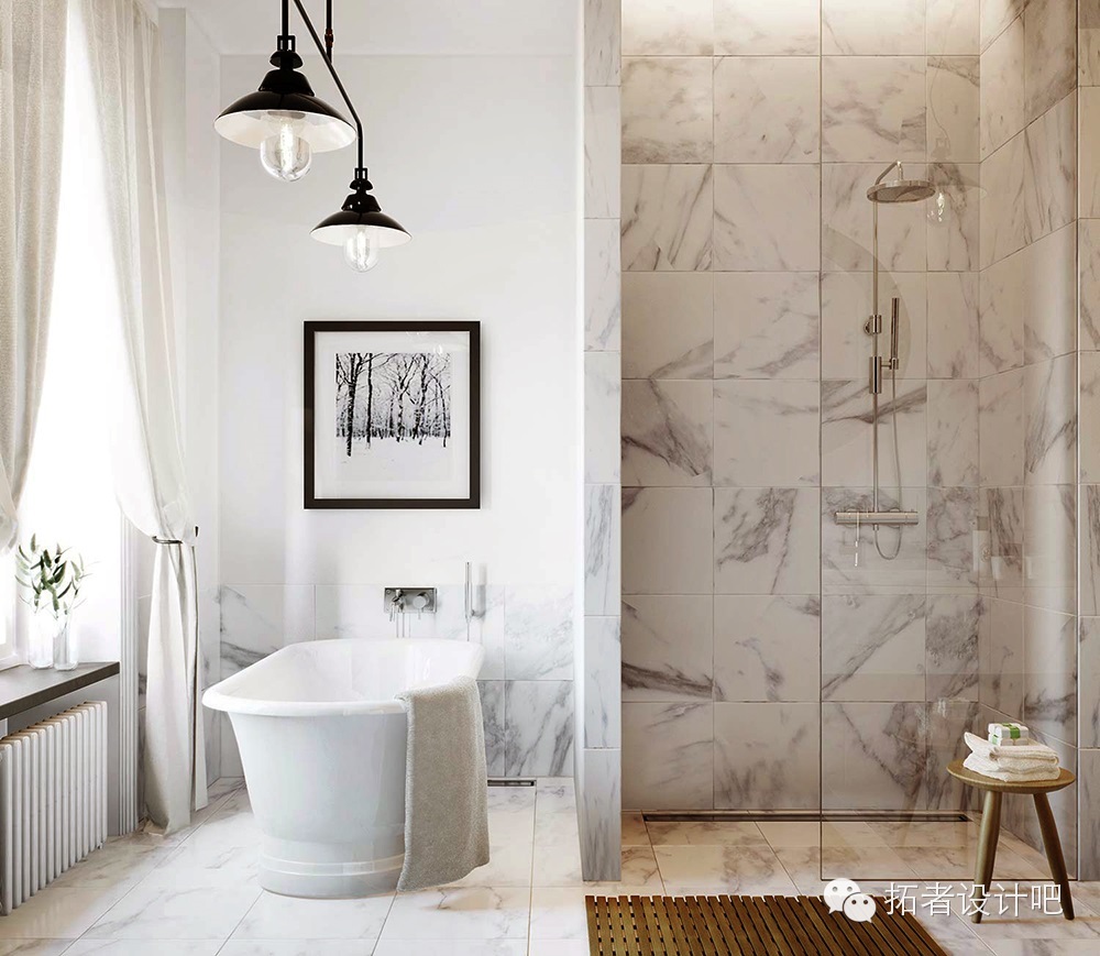 当涉及到女性大理石浴室颜色和细节是最值得看的,白色和灰色大理石的丰富变化,仔细看看细节你会有更多灵感。想打造女性浴室搜索《女人味 十足的浴室设计》看看吧。