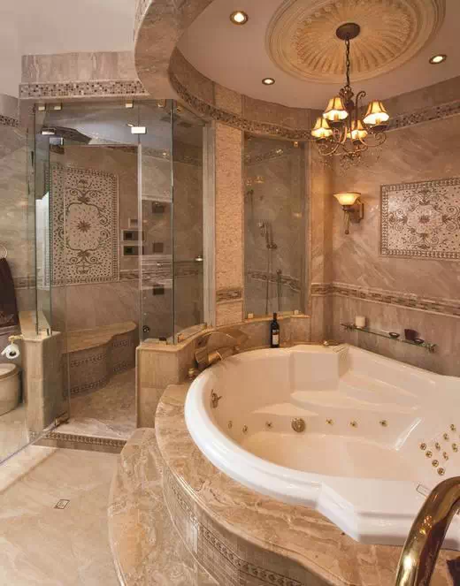 在《大理石的不同变幻》提到大理石是一种多功能的材料,可以雕刻成各种不同的艺术品来美化空间,这间宽敞的大理石浴室又是一个好例子,如何使用大理石在现代住宅中,记住的你生活习惯,细节和空间规划是必不可少的。